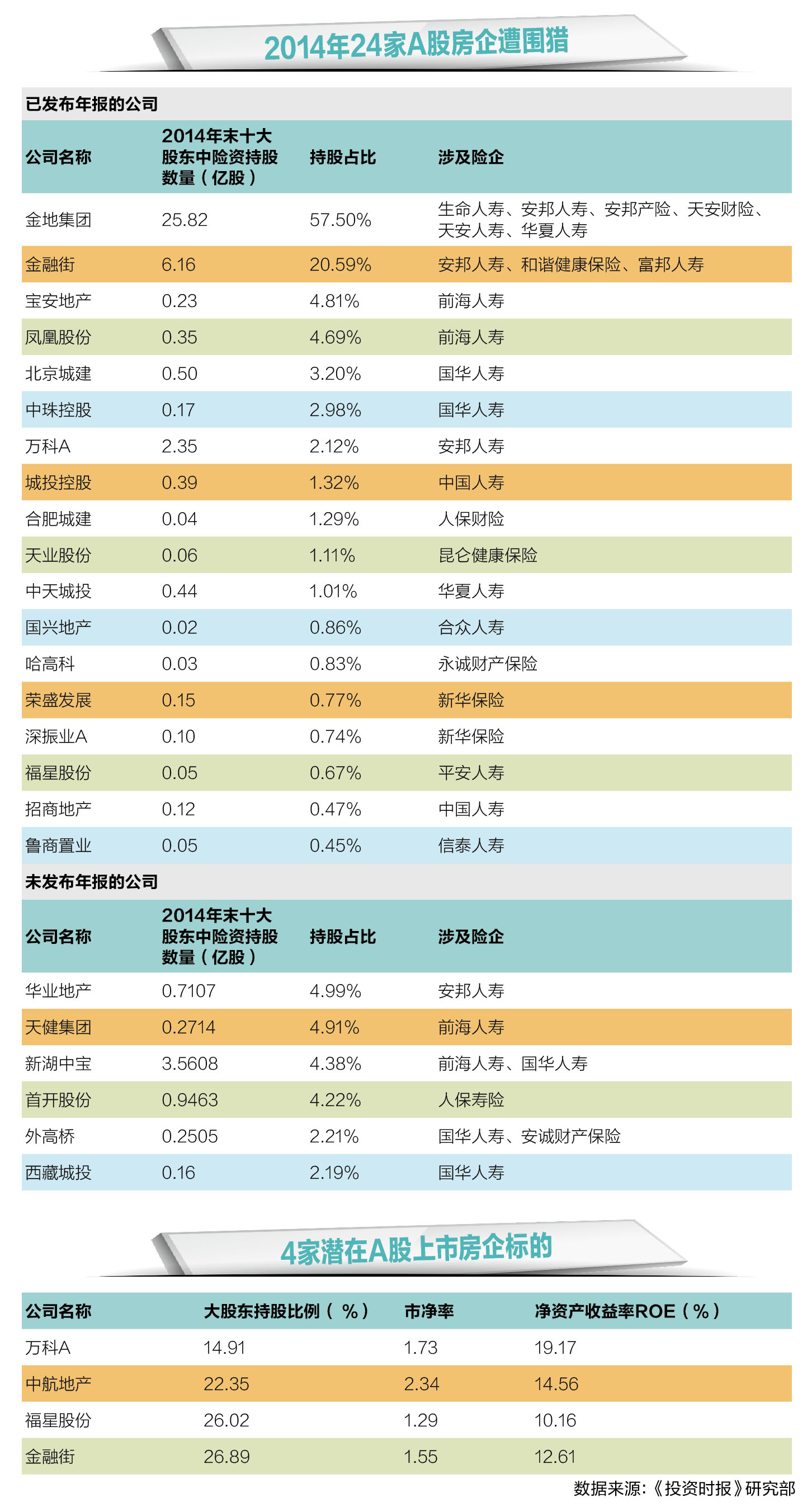 此外,前海人寿、中国人寿、新华保险、华夏保险等险企也纷纷入股宝安地产、招商地产、深振业、中天城投等房地产公司。