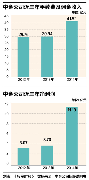 随后三年,中金公司的业绩有所回升,2012年至2014年净利润分别为3.07亿元、3.7亿元、11.19亿元。截至2014年末,其在境内外共设有3家分公司、20家营业部和45家子公司,资产总额约527亿元。