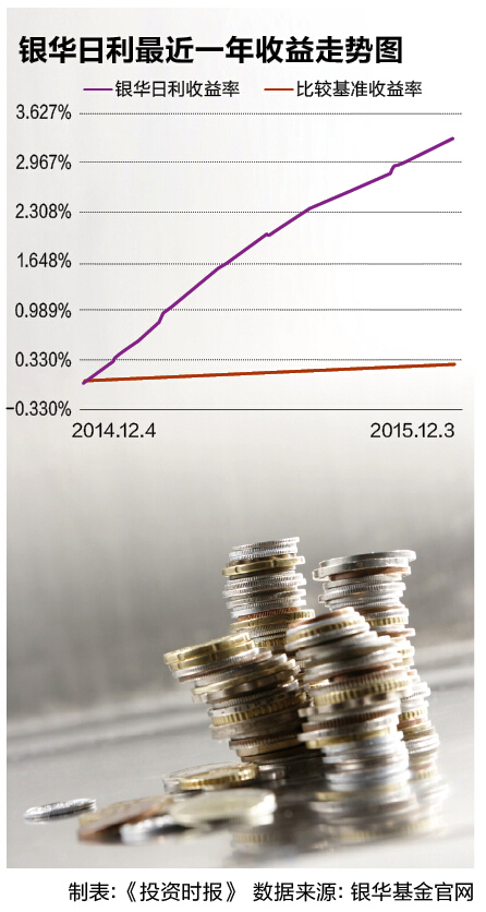 据Wind资讯统计,自2013年4月成立以来,银华日利累计取得了11.02%的收益率,年化收益率达到4%。截至12月1日,其今年以来收益率3%,在同类产品中排名第三,和银行利率相比更是有明显优势。