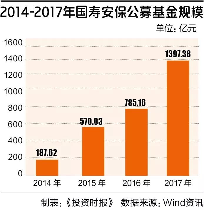 2014年1月,国寿安保首只公募基金——国寿安保货币正式亮相,自此以后规模迅速增长。Wind数据显示,2015年-2017年国寿安保公募基金总资产净值同比增幅分别为203.83%、37.74%、77.97%。至2017年末——即其成立仅4年之际,旗下基金数量已达40只,资产规模至1397.38亿元,在基金管理机构中排名第23,较2016年末的排名上升了9位。