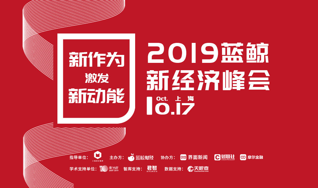 10月17日,由上海报业集团指导,蓝鲸财经主办,界面新闻、财联社、摩尔金融协办的“新作为激发新动能”2019年蓝鲸新经济峰会将于上海举办。此次峰会汇聚了强大的嘉宾阵容,著名经济专家和学者、各知名企业负责人等百名行业大咖将以主题演讲、圆桌论坛等形式,围绕中国新经济下的转型升级与新一轮发展机遇等议题展开讨论。
