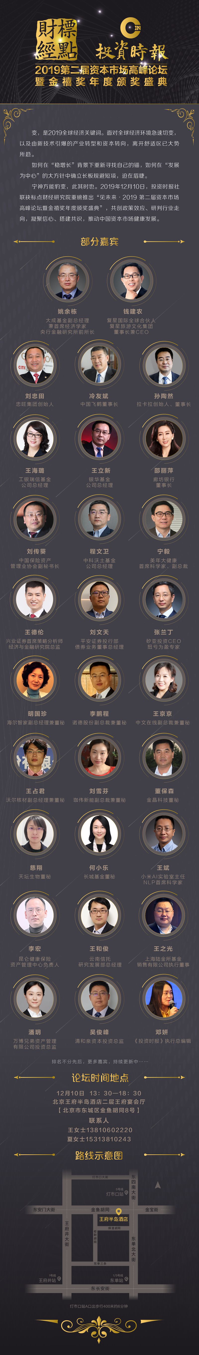 12月10日,标点财经研究院联合《投资时报》将于北京王府半岛酒店举办“见未来•2019第二届资本市场高峰论坛暨金禧奖年度颁奖盛典”。届时,数百位上市公司及金融机构重量级嘉宾和相关专家将共聚一堂,对上述问题发表真知灼见。