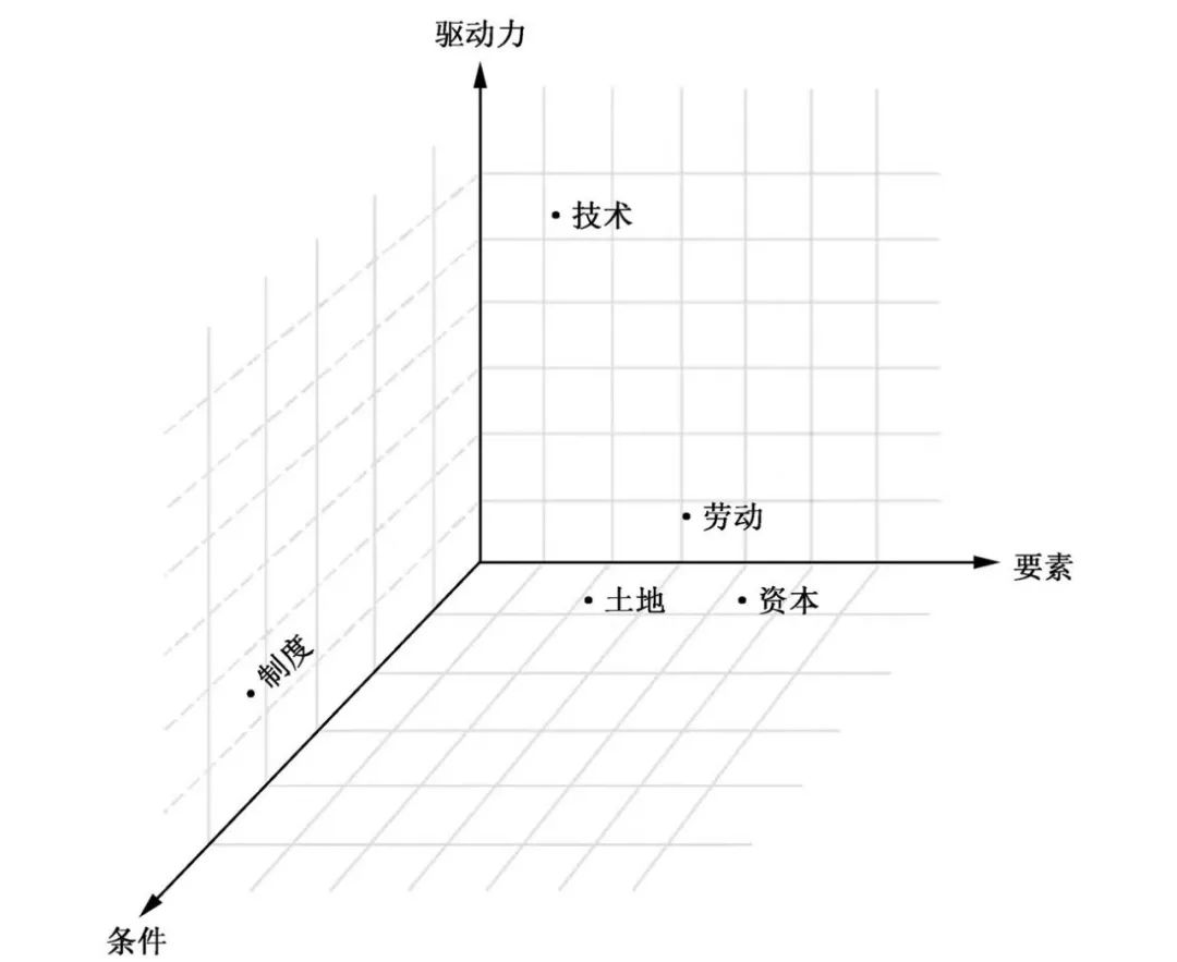 “新供给增长模型”是新供给经济学专门分析长期经济增长的三维、五要素增长模型,其中土地、资本和劳动是生产要素,技术是根本驱动力,制度(政府和市场的关系)是经济增长的条件。