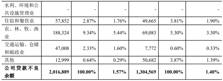 青农商行各行业公司贷款的不良余额分布情况