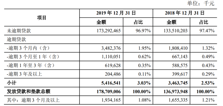 此外,2019年末,青农商行逾期贷款为54.17亿元,同比增幅达56.38%,逾期率为3.03%,同比提高0.5个百分点。其中,逾期3个月内(含)贷款为34.82亿元,同比大增92.59%,逾期率为1.95%,同比增加0.63个百分点。据悉,截至2019年12月31日,该行逾期3个月以上贷款已全部计入不良贷款。