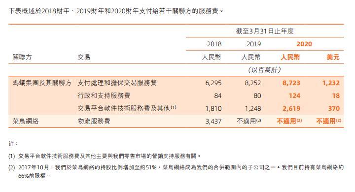 阿里巴巴支付给蚂蚁集团及其关联方的服务费