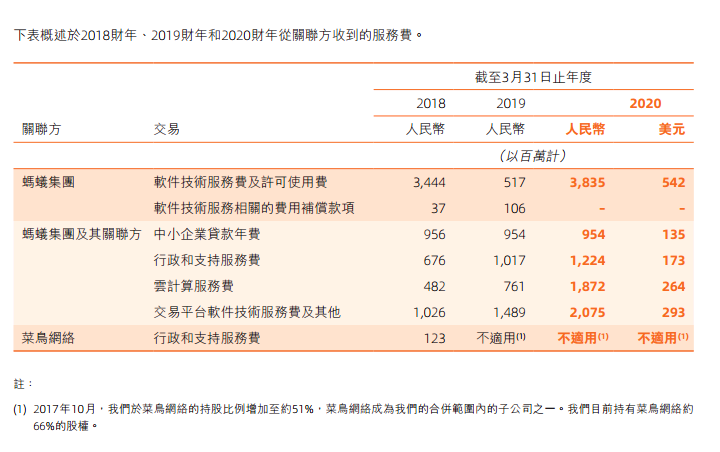 阿里巴巴从蚂蚁集团及其关联方收取的服务费