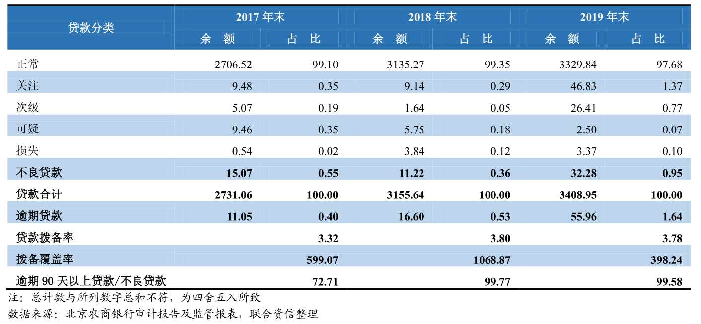 北京农商行贷款质量(单位:亿元、%)