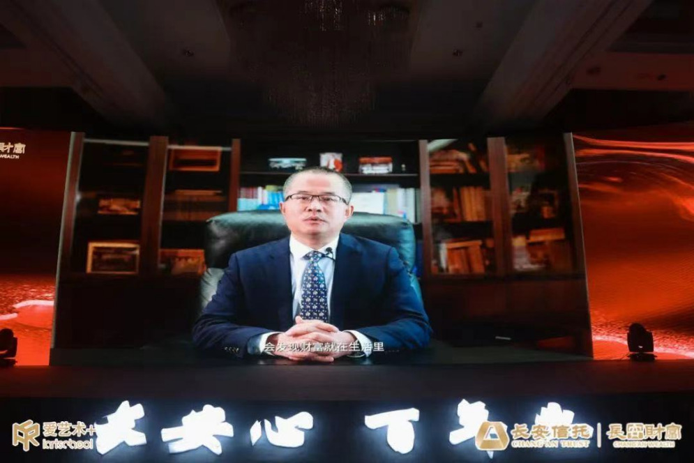 长安信托领导及嘉宾与浙江艺高董事长、总裁等人共同启动《长安艺术学堂》。长安信托董事长高成程通过视频对《长安艺术学堂》的启动表示热烈祝贺。