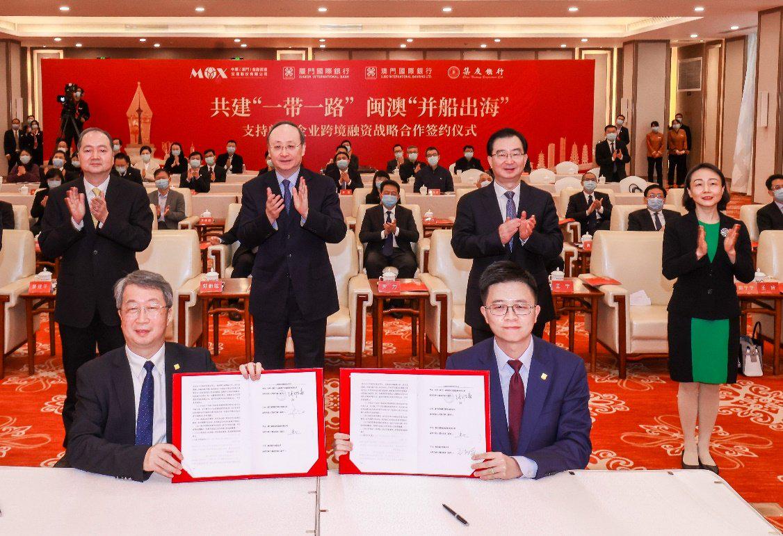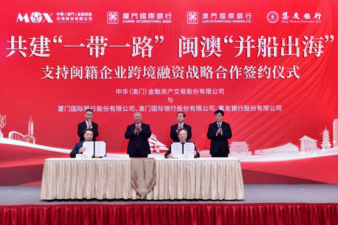 在闽澳双方共同见证下,中华(澳门)金融资产交易股份有限公司与厦门国际银行集团成员单位签署了支持闽籍企业跨境融资战略合作协议。根据协议,各方将推进资源共享、优势互补,积极统筹协调境内外两个市场,共同支持福建企业拓宽境外融资渠道,助推闽澳金融合作务实落地。