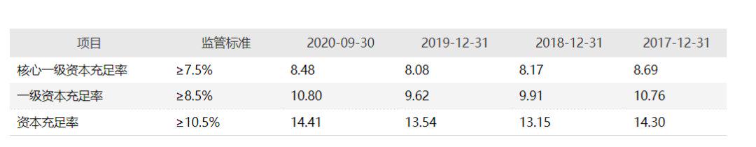 2018年没有再融资计划。2019年5月该行再次发行100亿元二级资本债。2020年有两次资本补充计划,第一次是在1月,在全国银行间债券市场发行无固定期限资本债券70亿元,用于补充其他一级资本;当年4月又通过非公开发行不超过8亿股人民币普通股(A股)募集了71.6亿元,扣除各项发行费用后,实际募集资金净额为71.32亿元,全部用于补充申请人核心一级资本。