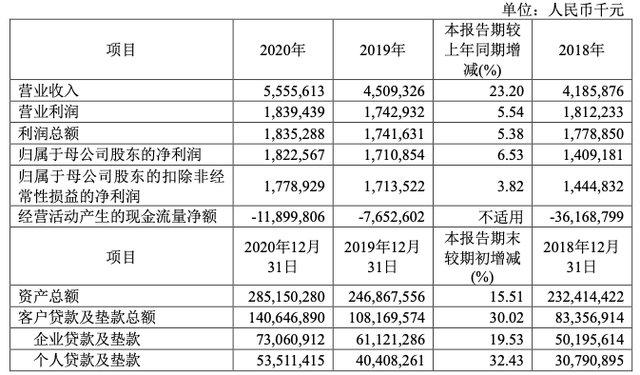 另外,报告期内该行实现营业收入55.56亿元,同比增加10.46亿元,增长23.20%;实现归属于母公司股东的净利润18.23亿元,同比增加1.12亿元,增长6.53%。