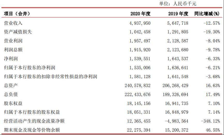 受疫情以及支持企业复工复产让利的影响,该行在2020年的盈利能力有所下降。数据显示,去年该行营业收入为49.38亿元,同比下降12.57%;净利润为15.40亿元,同比下降6.33%。