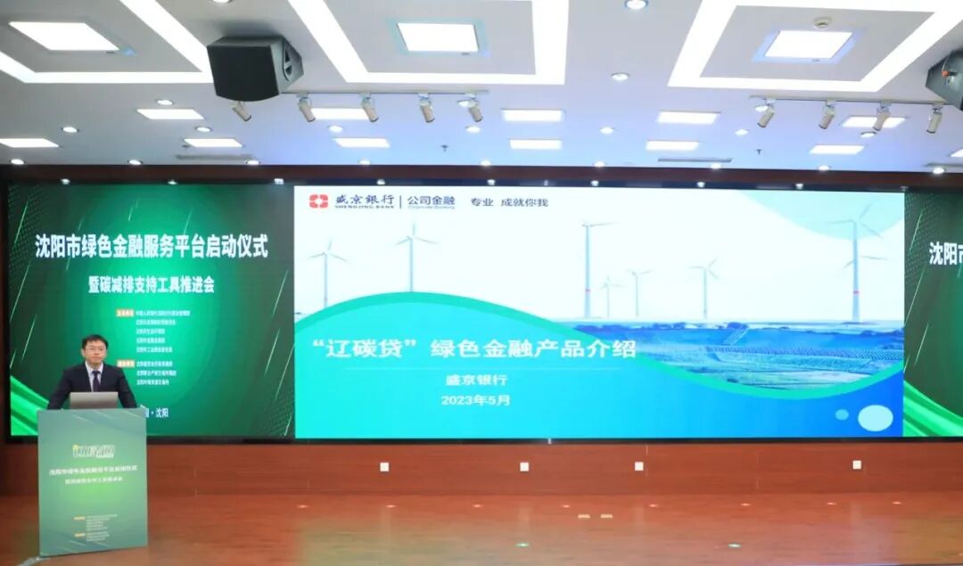 2023年5月,由中国人民银行沈阳分行营管部主办的“沈阳绿色金融服务平台启动仪式暨碳减排支持工具推进会”在沈阳召开。盛京银行作为沈阳市银行业代表,发布了“辽碳贷”系列产品,并对碳减排贷款、碳配额质押贷款和碳资信挂钩贷款等多个子产品进行了详细介绍,切实解决企业在绿色金融领域融资贵、融资难的问题。