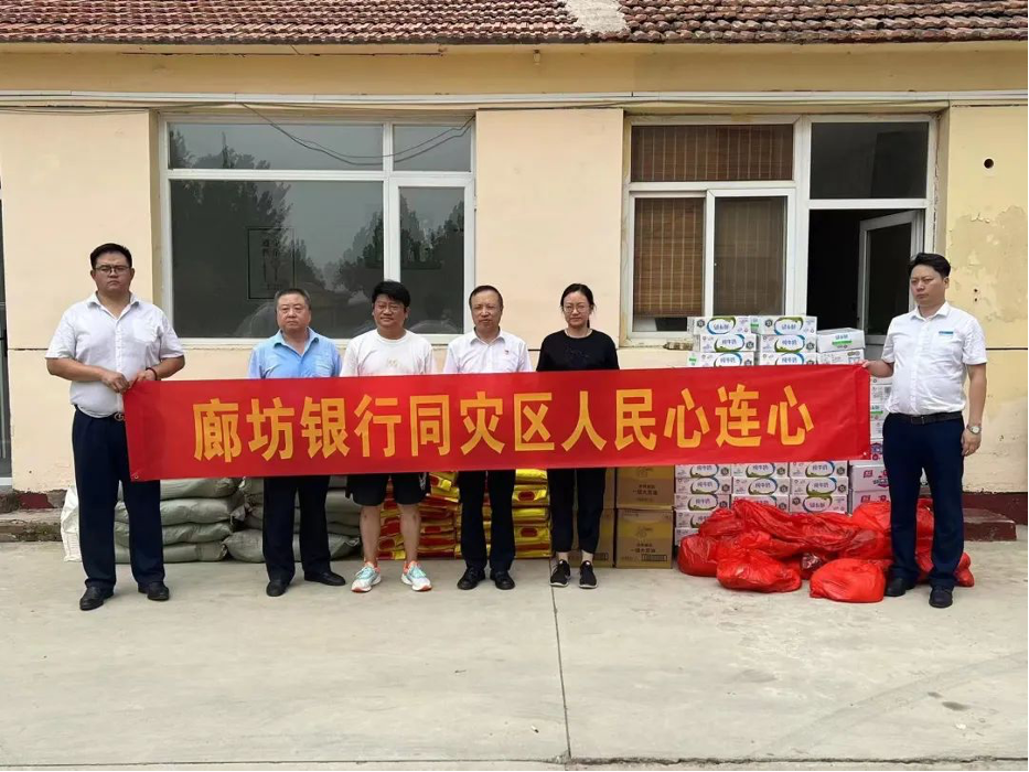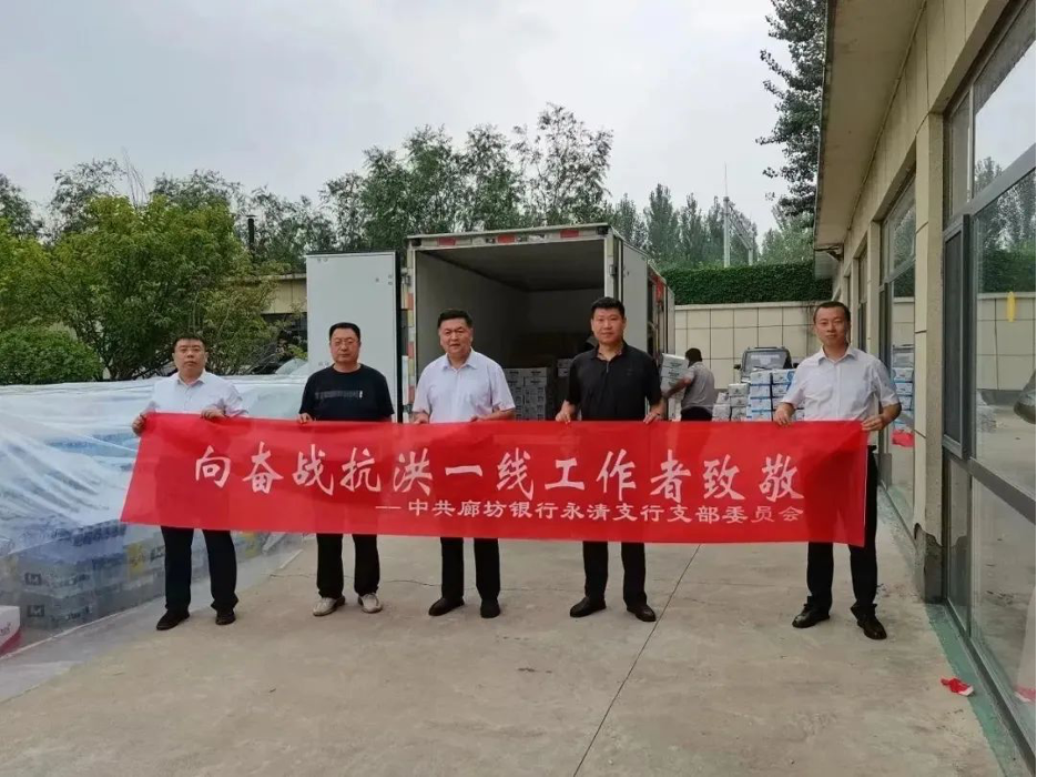 廊坊银行永清支行向永清县韩村镇捐赠抗洪救灾物资