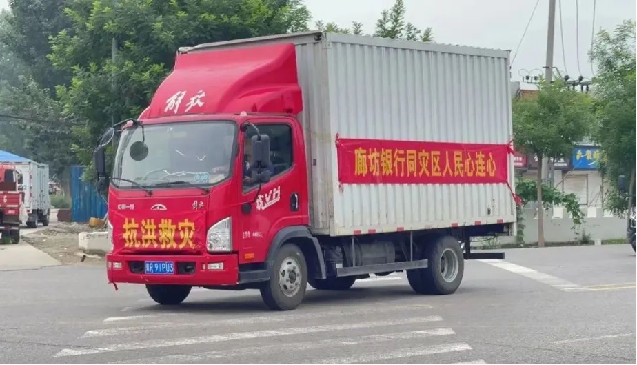 廊坊银行积极组织力量支援抗洪救灾一线,为受灾群众运送物资