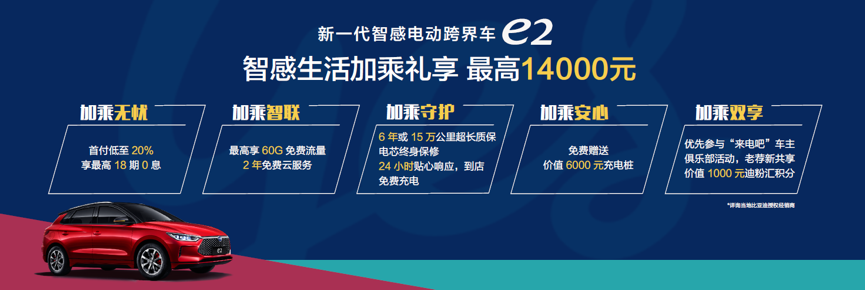 相信随着比亚迪e2的上市,更多国人将告别“电动出行=通勤”的刻板印象,比亚迪e2也将“跨界”到出游、社交等更多元的实用场景中,真正引领电动车在年轻消费群体中的普及,让我们张开双臂,迎接比亚迪e2带来的实力加乘吧!