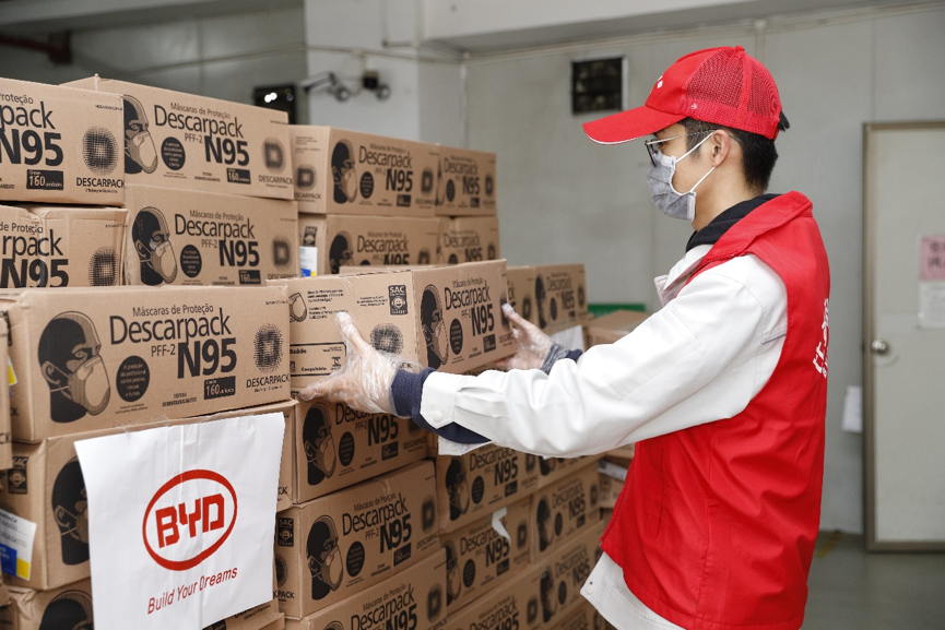 2月13日,比亚迪首批海外援赠医疗物资N95口罩顺利交付医院一线
