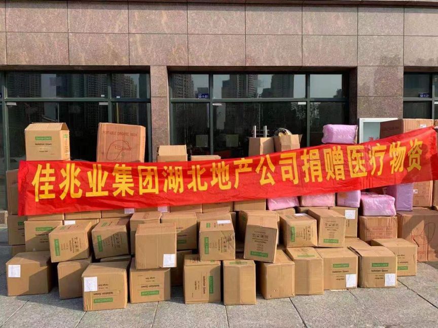 当前,湖北武汉、孝感等重点疫区防护物资紧缺,医护人员奋战一线防护压力较大,佳兆业集团紧急协调各类渠道,采购了一批医疗物资支援抗疫一线。2月13日,佳兆业决定向武汉市第九医院、湖北省人民医院、武汉市第一医院等11所医院捐赠5000套防护服,首批2000套已送达,剩余3000套在抓紧采购中。佳兆业还决定向孝感市临空经济区管理委员会捐赠2.5吨消毒液,用于新型冠状病毒肺炎防疫及治疗。