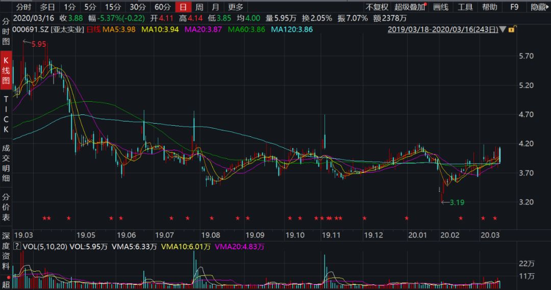 亚太实业过去一年的股价走势