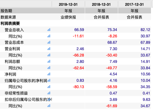 到了2019年,世联行的业绩进一步下降。据3月12日发布的2019年度业绩快报显示,世联行实现营业收入66.59亿元,同比下降11.61%,归母公司净利润为8260.57万元,同比大幅下降80.13%。