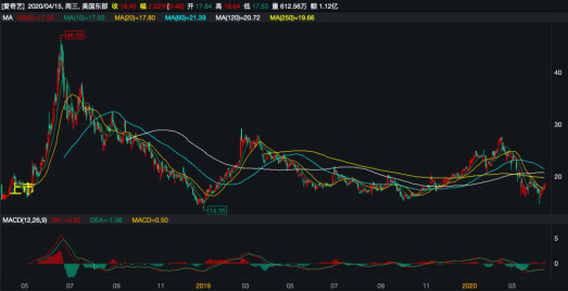 不过,对于资本市场投资者来说,更多的感受大概率是惨痛。截至2020年4月15日,爱奇艺收盘价为18.45美元/ADS,较其于今年2月中旬创下的27.5美元/ADS阶段性高点下跌32.9%,与上市两个月后触及的46.23美元/ADS历史高点相比,更是下挫60%。