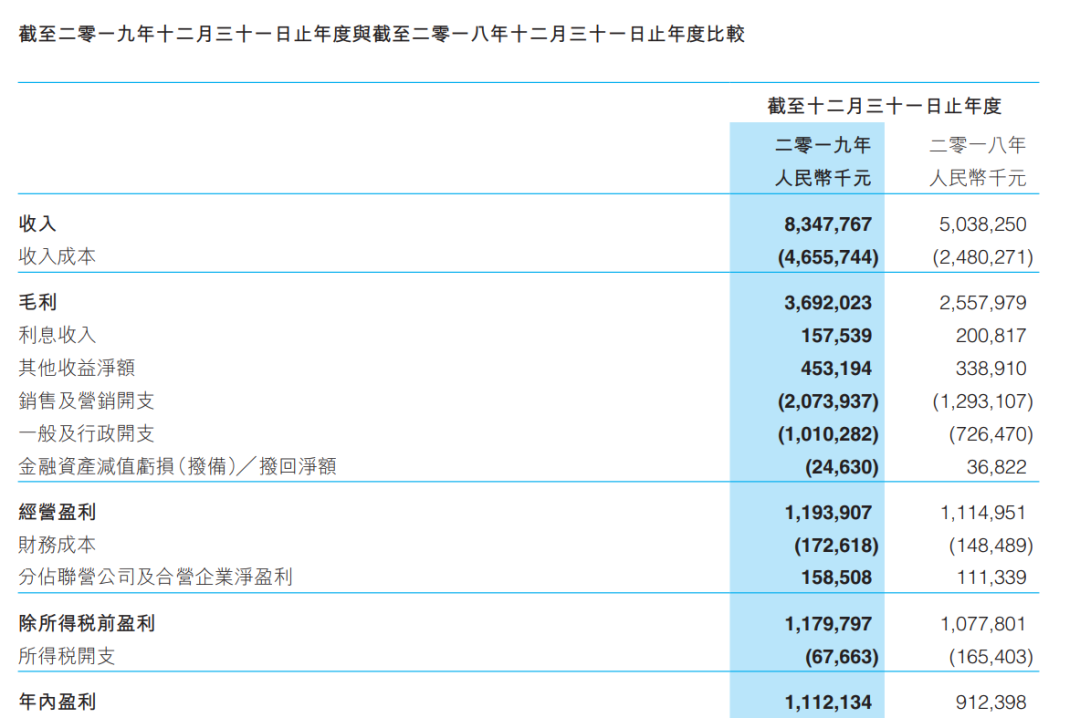 阅文集团2019年年报显示,年内该公司实现总收入83.5亿元,同比增长65.7%;收入成本亦同比大增87.7%至46.5亿元;毛利润为36.9亿元,同比增长44.3%;经营盈利11.93亿元,同比增长7.1%;净利润为11.1亿元,同比增长21.9%。
