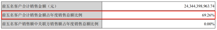 数据显示,2019年,歌尔股份来自前五大客户的合计销售金额为243.44亿元,占年度销售总额比例高达69.26%。其中,第一大客户销售占比为40.65%,与第二大客户的销售占比共计52.16%。
