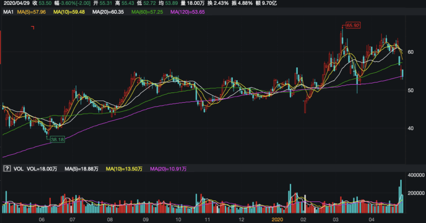 或因白酒业务业绩不及预期,北京顺鑫农业股份有限公司(下称顺鑫农业,000860.SZ)股价连跌三日。截至2020年4月29日,顺鑫农业报收于53.50元/股,三日内股价下跌14.8%,较2020年3月创下的年内高点亦下挫19.43%。