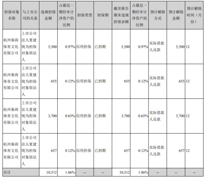 天夏智慧日前披露的2019年主要经营业绩信息亦显示,由于夏建统而起的违规担保有四起,共涉及违规担保金额1.05亿元,目前相关担保均已到期。