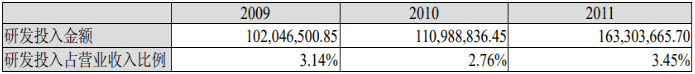 贝因美2009—2011年的研发投入情况(元)