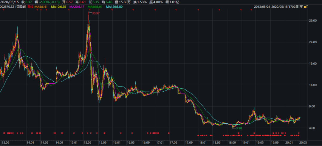 值得注意的是,此前由于2016年、2017年连续两年大幅亏损,贝因美于2018年4月27日起被实施“退市风险警示”特别处理,股票简称由“贝因美”变更为“*ST因美”,披星戴帽。