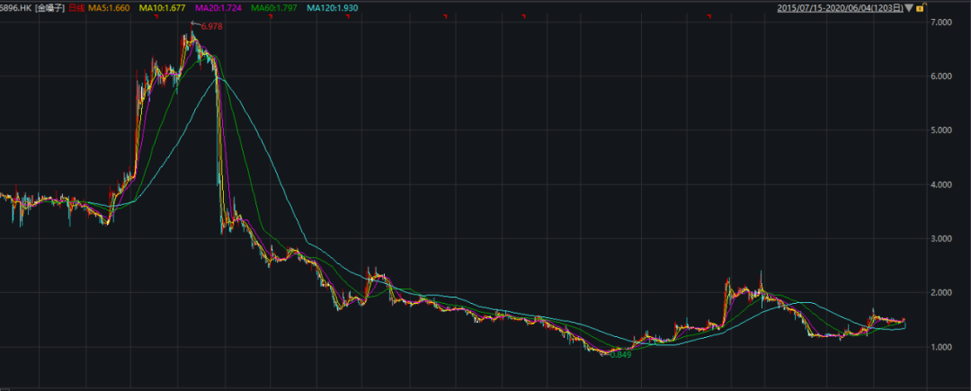 达到高点后,金嗓子股价持续走低,截至2020年6月4日收盘,金嗓子股价收于1.41港元/股,市值则跌至不足11亿港元。