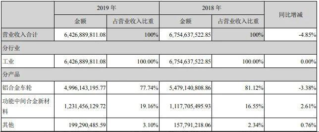 根据介绍,四通新材的铝合金车轮轻量化产品销往中外各大知名汽车制造商。该公司2019年报显示,铝合金车轮业务占其营业收入的比例较高,达到78%。