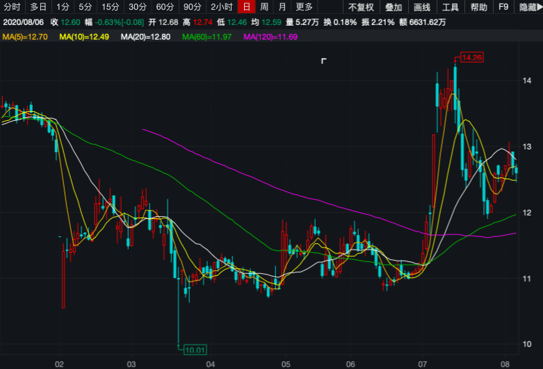 截至8月6日收盘,该公司股价收于12.6元/股,较一个月前创下的14.26元/股年内高点下挫11.6%,总市值为508.31亿元。
