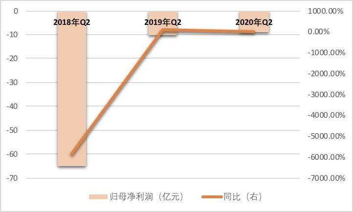拼多多2018年二季度—2020年二季度归母净利润及增速情况