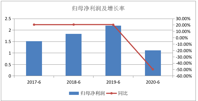 可以看到,2017年上半年该公司营收与归母净利润变动虽同向增长,但是区间较大,而时至2019年上半年,营收与归母净利润同比增速则出现大幅度背离。只不过相较今年中报业绩,其2019年中期业绩是增利不增收。