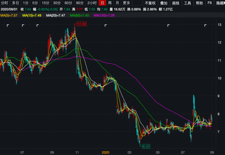 截至2020年9月1日,森马服饰报收于7.64元/股,较52周高点下挫37%,市值为208亿元。
