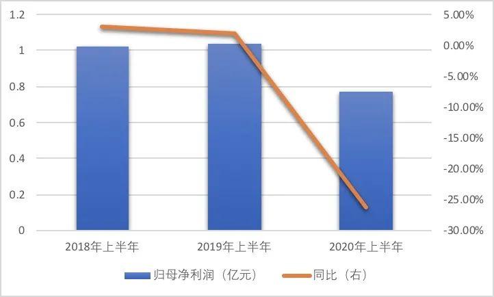 新乳业2018年上半年—2020年上半年归母净利润及同比增速情况
