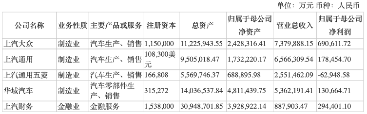 上汽集团2020年上半年主要控股参股公司数据
