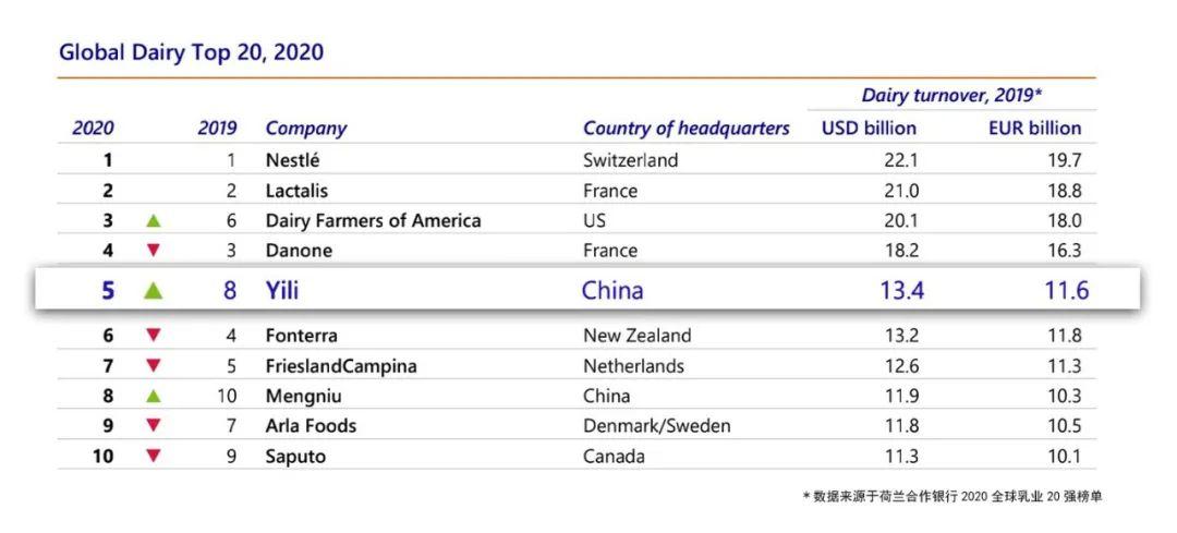 近日,乳业龙头伊利双喜临门:凭借半年报业绩逆势超预期增长,创市值历史新高;随后,在荷兰合作银行公布的2020年“全球乳业二十强”榜单中,伊利集团成功跻身五强,成为第一家也是迄今为止唯一一家进入全球5强的亚洲乳企。
