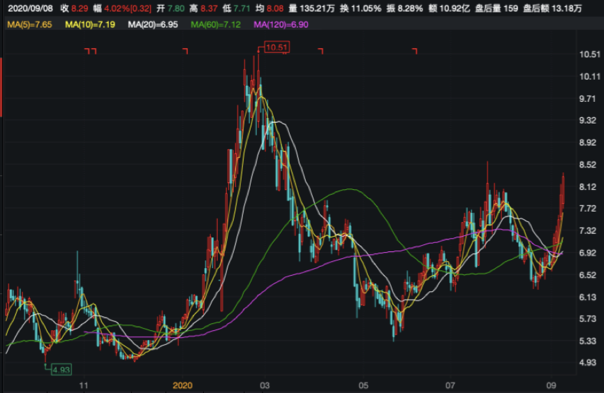 不过近日,该公司股价有所回升。截至9月8日收盘,其股价收于8.29元/股,市值达到145.32亿元,但仍较52周高点(10.51元/股)下挫21%。