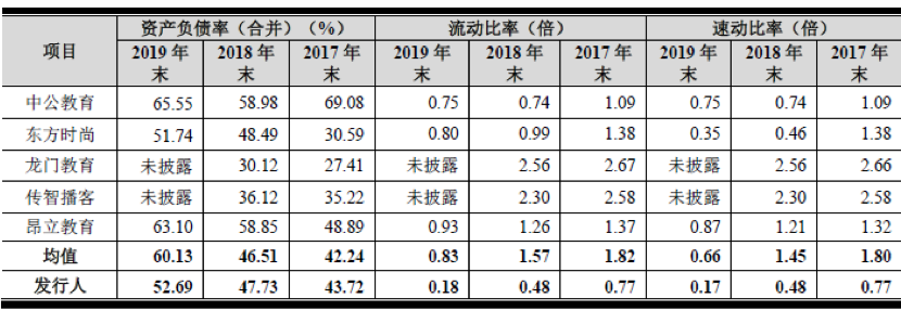《投资时报》研究员注意到,近年来老鹰股份盈利状况良好,报告期内分别实现营业收入1.73亿元、2.34亿元、2.87亿元,净利润3788.50万元、5982.10万元、7819.57万元。但由于近年该公司先后新建了两个校区,导致其短期偿债能力明显低于同行业可比水平。此外,受2020年开始全国高校(除45所独立艺术院校)全面取消美术校考影响,2019年老鹰股份美术长期班人数下滑,这也给其未来发展增加了不确定性。