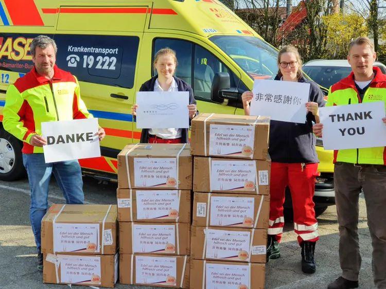 在海外捐赠的过程中,更让人暖心的是,复星为每一批物资都附上了中文古诗词。比如,捐赠米兰的两批物资分别写着“西程十万里,与君同舟行”,捐赠孟买的物资写着“尼莲正东流,西树几千秋”等。每一句古诗词背后,都有古今中外源远流长的友谊故事,让疫情之下的全球互助更添温暖。