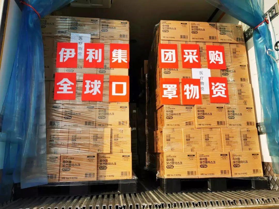 2月3日,伊利调动全球供应链资源紧急采购100万个口罩中的第一批口罩到达青岛港。同时,伊利抗击疫情捐赠行动扩展到全国,数日内共完成上千场捐赠行动;