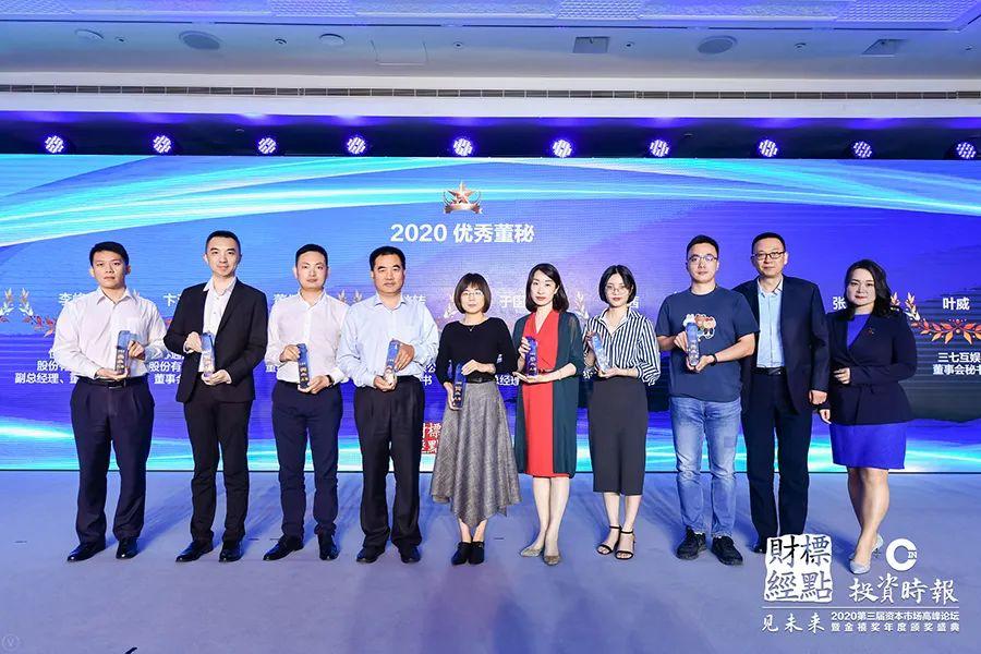 其中,12人获得“金禧奖·2020优秀董秘”奖项,他们分别是:北京银行股份有限公司董事会秘书刘彦雷;东旭光电科技股份有限公司董事会秘书王庆;恒力石化股份有限公司副总经理、董事会秘书李峰;江苏通用科技股份有限公司董事会秘书卞亚波;金晶科技董事会秘书董保森;罗克佳华科技集团股份有限公司董事会秘书王转转;中国石油集团工程股份有限公司副总经理兼董秘于国锋;深圳华大基因股份有限公司董事会秘书徐茜;珈伟新能源股份有限公司副总裁兼董事会秘书刘雪芬;江西宏柏新材料股份有限公司副总经理、董事会秘书张捷;三七互娱董事会秘书叶威;科达集团股份有限公司董事会秘书姜志涛。