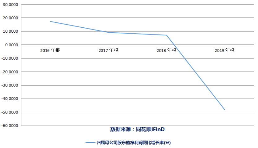 伴随着连续的跨界投资,贵州百灵的业绩却不如以前。自2017年开始,该公司的净利润增长率大幅放缓。