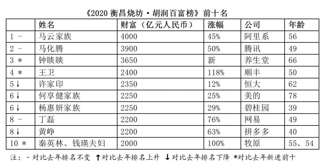 ?《2020衡昌烧坊·胡润百富榜》完整榜单请浏览 http://www.hurun.net