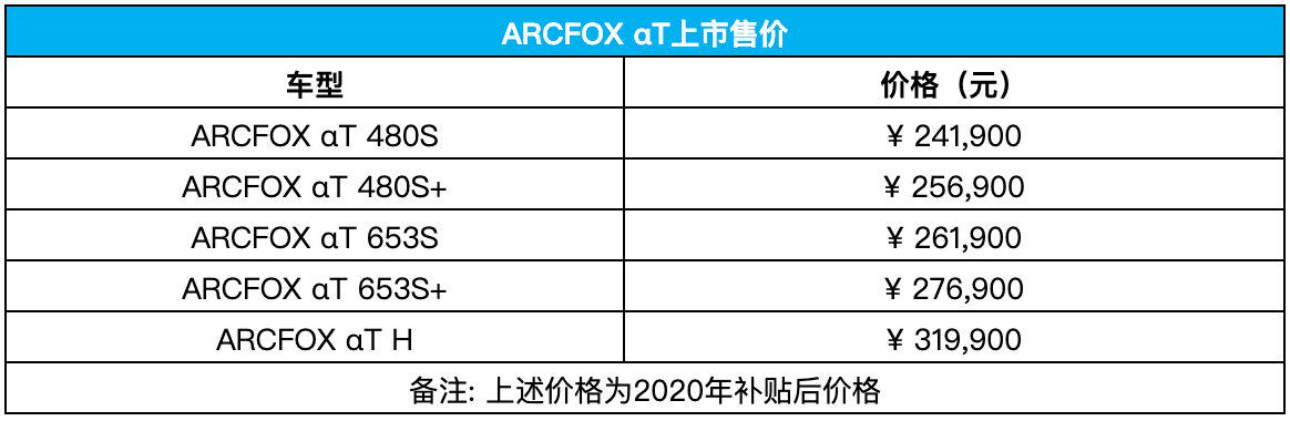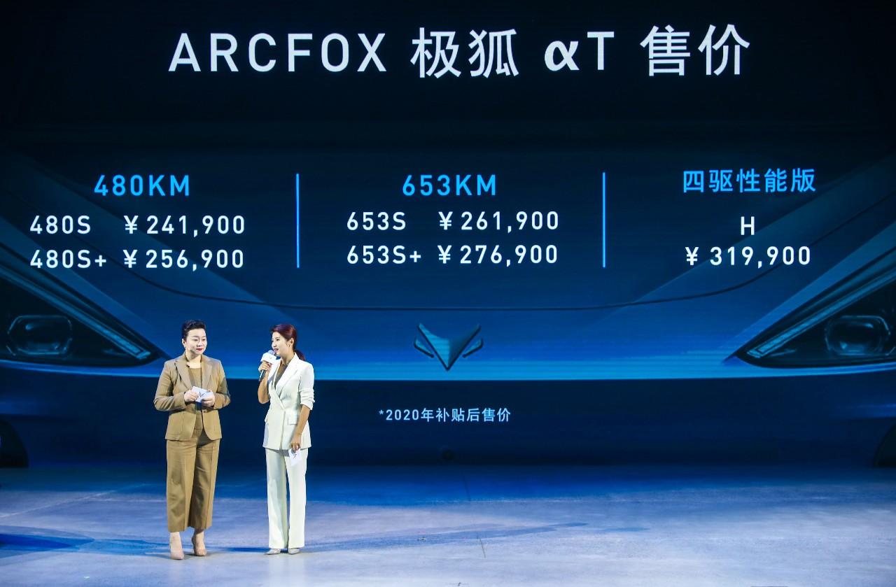 2020年10月24日,高端智能新能源汽车品牌ARCFOX极狐在北京工业文化新地标首钢园举办“甭设限探索日”,同步宣布首款量产车型ARCFOX极狐αT售价。新车拥有480/600/653km三种续航版本五款车型,售价24.19 - 31.99万元,今年内购车更可享受3年0利率或首付15%低息贷款礼遇,另外置换购车用户还可享受最高1.5万元补贴。