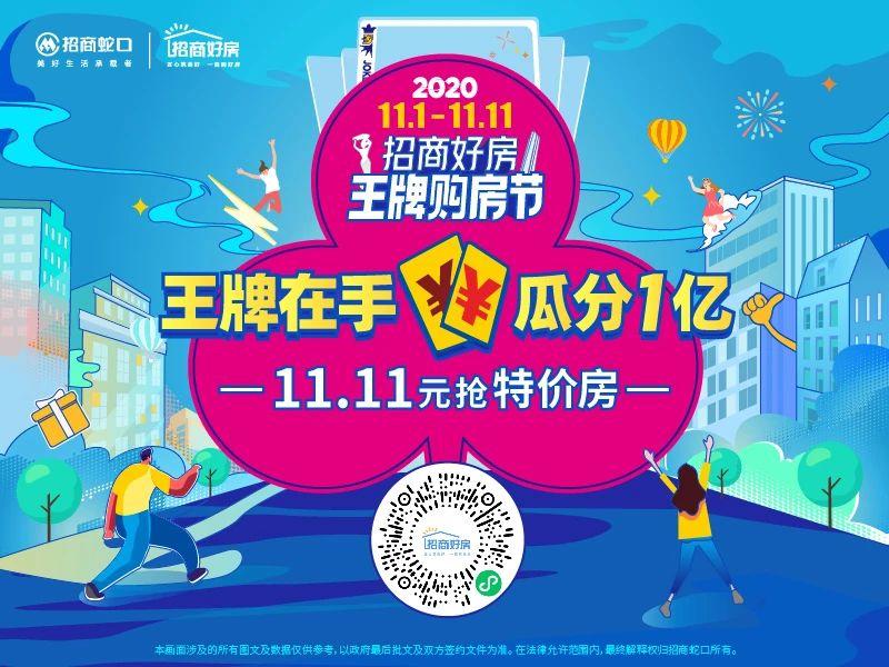 招商蛇口倾力打造的“王牌购房节”,从11月1日持续至11月11日,主打“王牌抽奖、王牌优惠、王牌直播、王牌经纪人”等系列活动,其中“王牌在手瓜分1亿、最高单套补贴100万、11.11元秒杀特价房、现金红包99.99%中奖”等,堪称“王炸”的购房优惠大礼包即将燃爆11月。